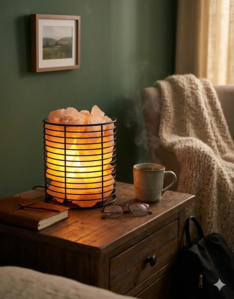 Cada lámpara está hecha de piedra de sal natural del Himalaya, conocida por su apariencia única y su brillo suave que aporta una sensación de paz y armonía al entorno. 🪨💫